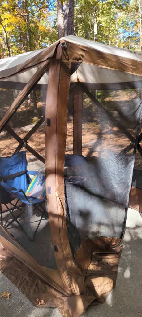 Walked to the trash can and checked out the rest of the park. Put the gazebo up and did some paper crafting.