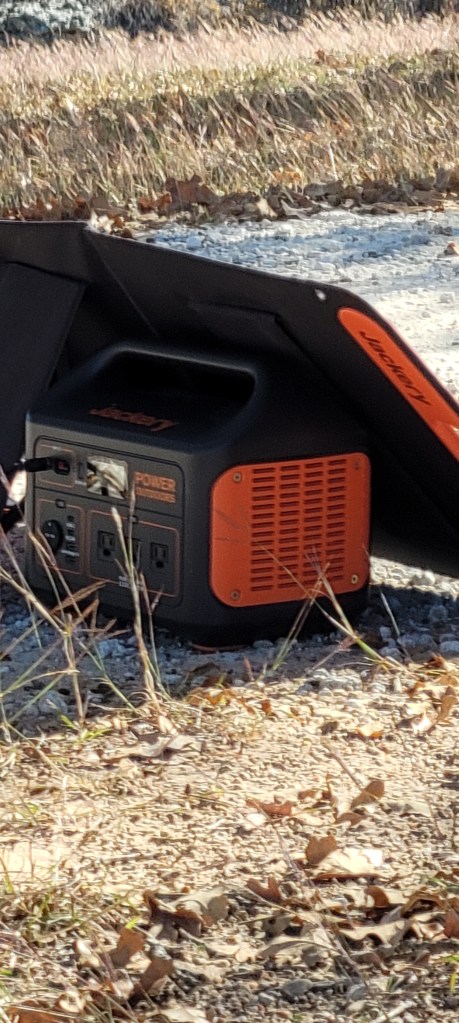 Nice quiet night. Watched some TV via the Jackery Power Station. Love that thing and it recharges by the sun, DC and AC plugs. It is the 1000 watt model. Thay have a 1500 watt now. Of course, after I buy mine!
