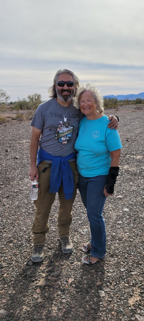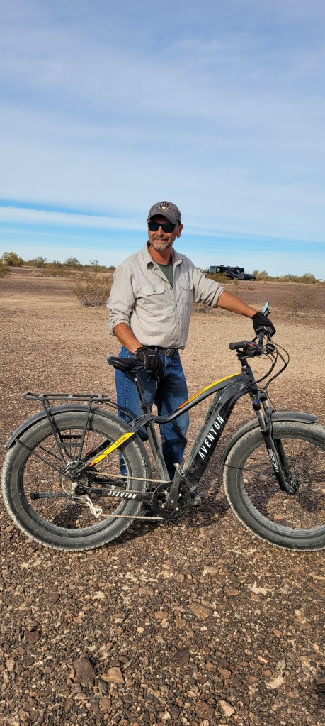 Then right after he came, Jeff from the Escapees event came riding his bike over. We just spent a week in Tucson at the event. He has a van like mine and he put in his own Lithium batteries on it.