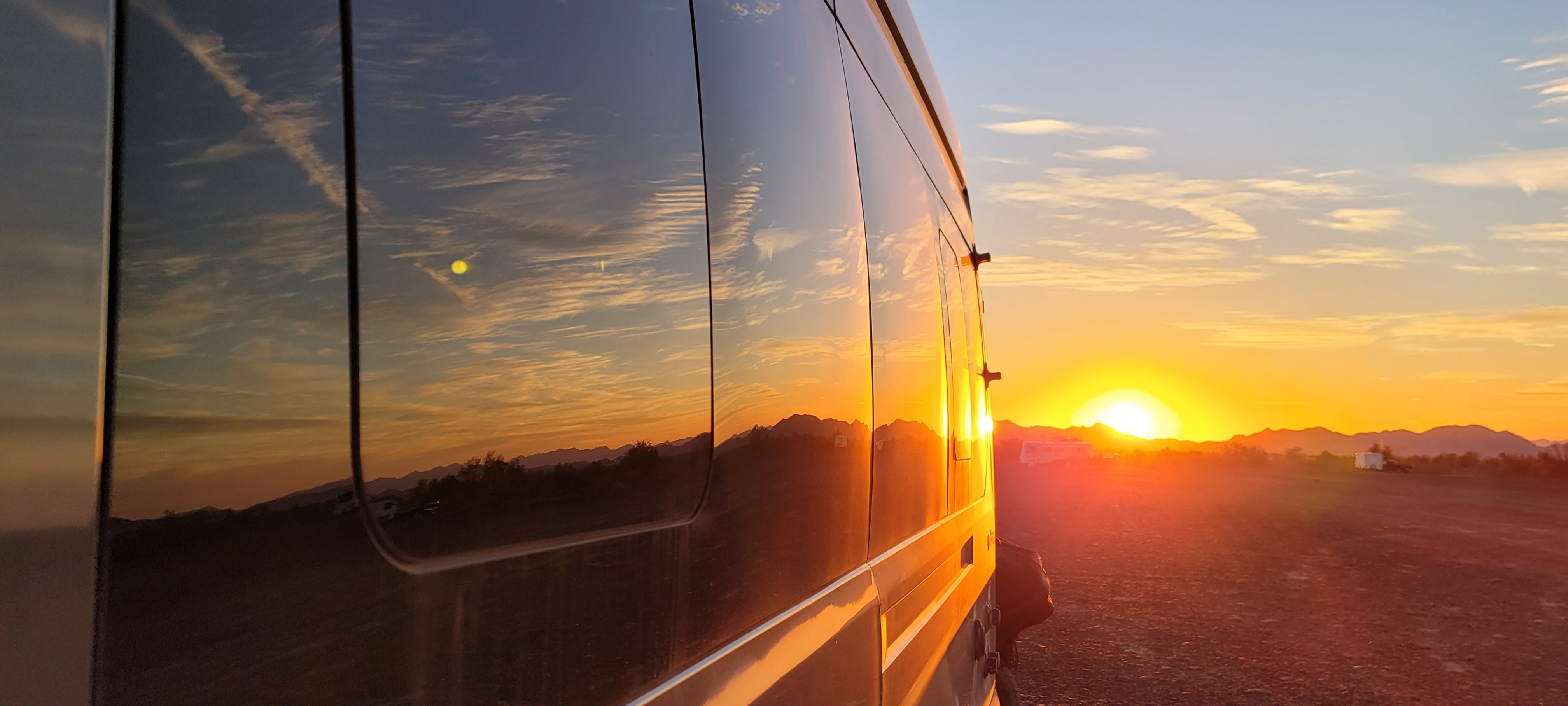 Totally crazy night. Went outside to watch the sunset and had the most vivid full moon at the front of the van and the most gorgeous sunset at the back of the van. Go figure!