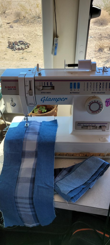 Desert is very windy today. Have to stay in the van but that’s OK! I’m sewing!