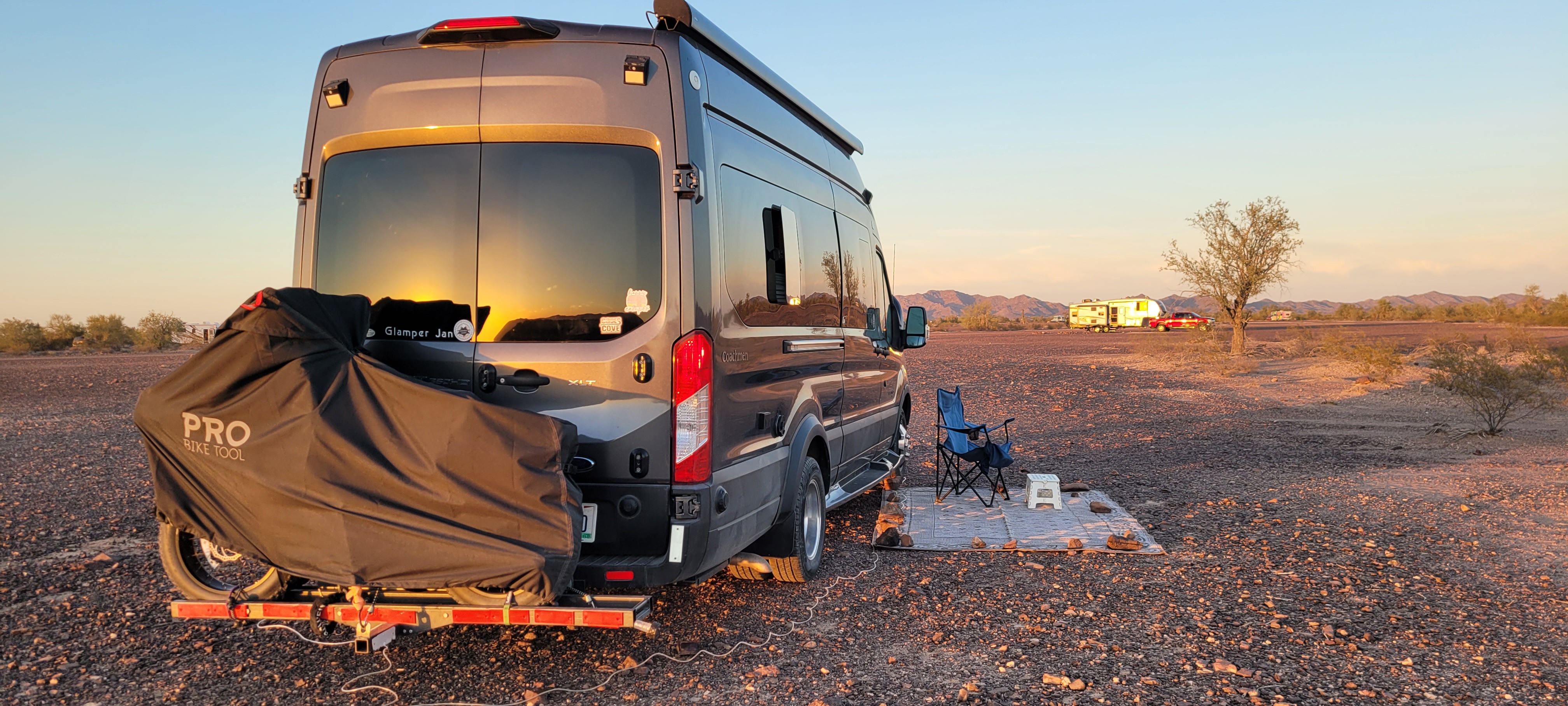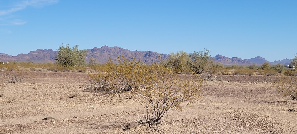 Still on Plomosa Rd. In Quartzsite AZ. Love it out here. It is so quiet. Not even a Coyote. Guess it is still too cold for them at night.
