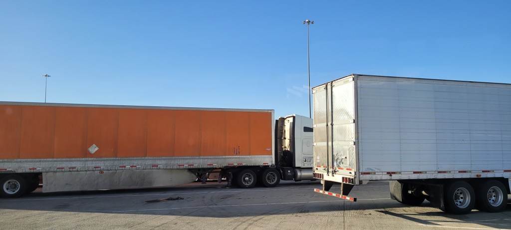 TRUCKS POURING IN BECAUSE OF THE WIND.