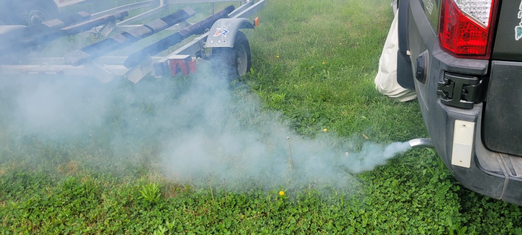 I decided to start the generator because I hadn’t started it since the oil was changed in it in Galion Ohio at the dealership. So I started the engine went inside and started smelling burning oil.