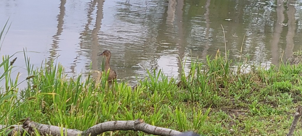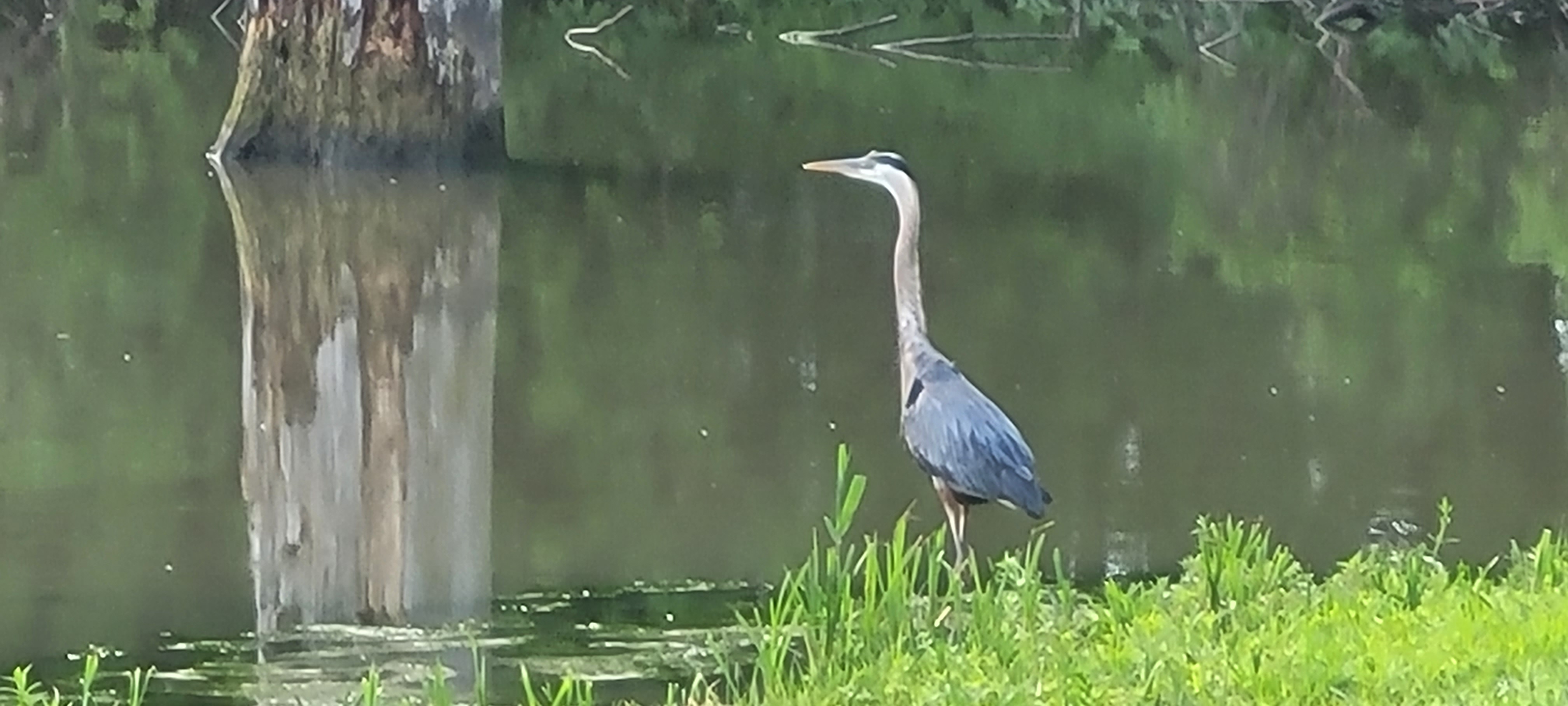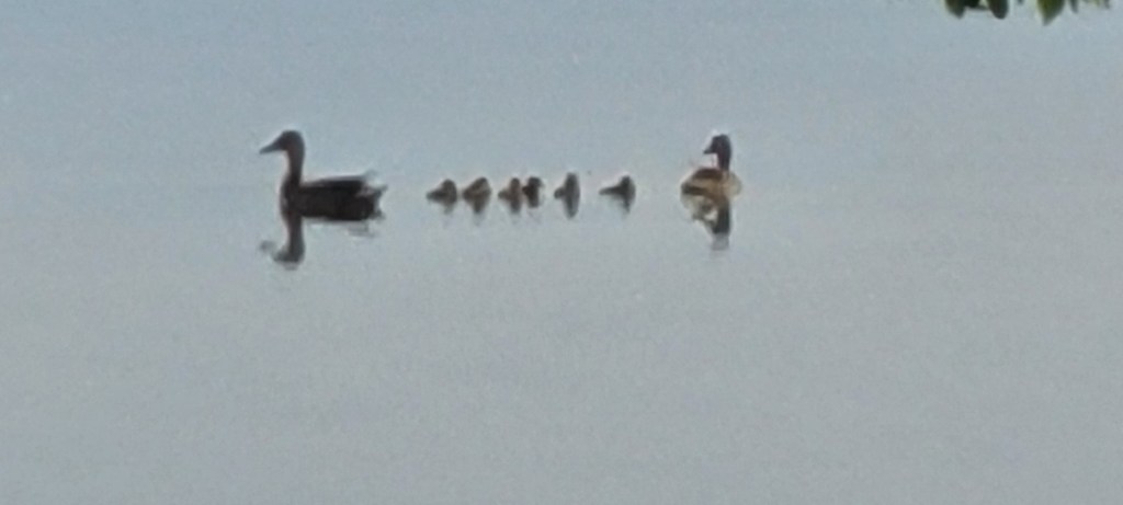 Woke up to the sounds of wildlife fighting on the beach. Wendel the Blue Heron decided he didn’t want to share his beach with the mallard duck family amd their five ducklings.