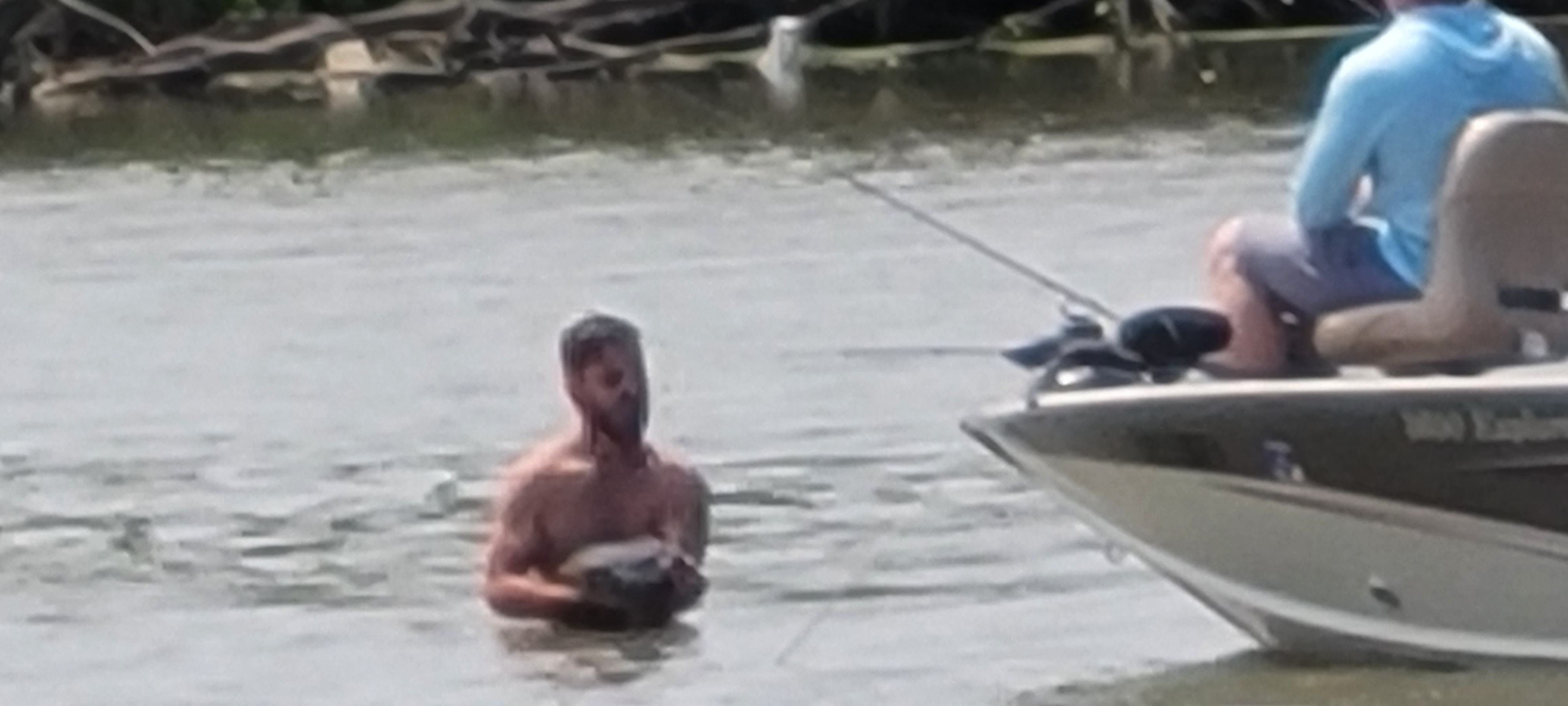 These 3 guys were fishing and hauling them in as fast as they could. One got his line snagged on a log and he couldn’t get it free so he talked his other buddy into jumping into the water to rescue this flailing fish.