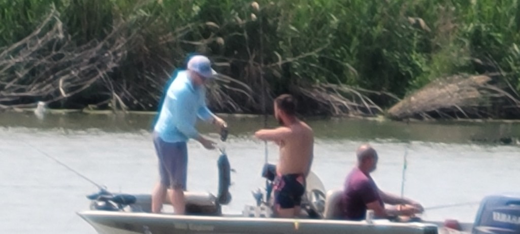 He jumped in and got a hold of the fish and tried to free him but he had rolled into the line and gut had to free him and carry him to the boat. Pretty heroic I’d say! Besides being a good friend!