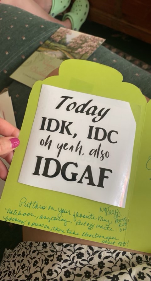 She always says Don’t know, don’t care. So I made her this window sticker. Gretchen thought it was funny. Lol