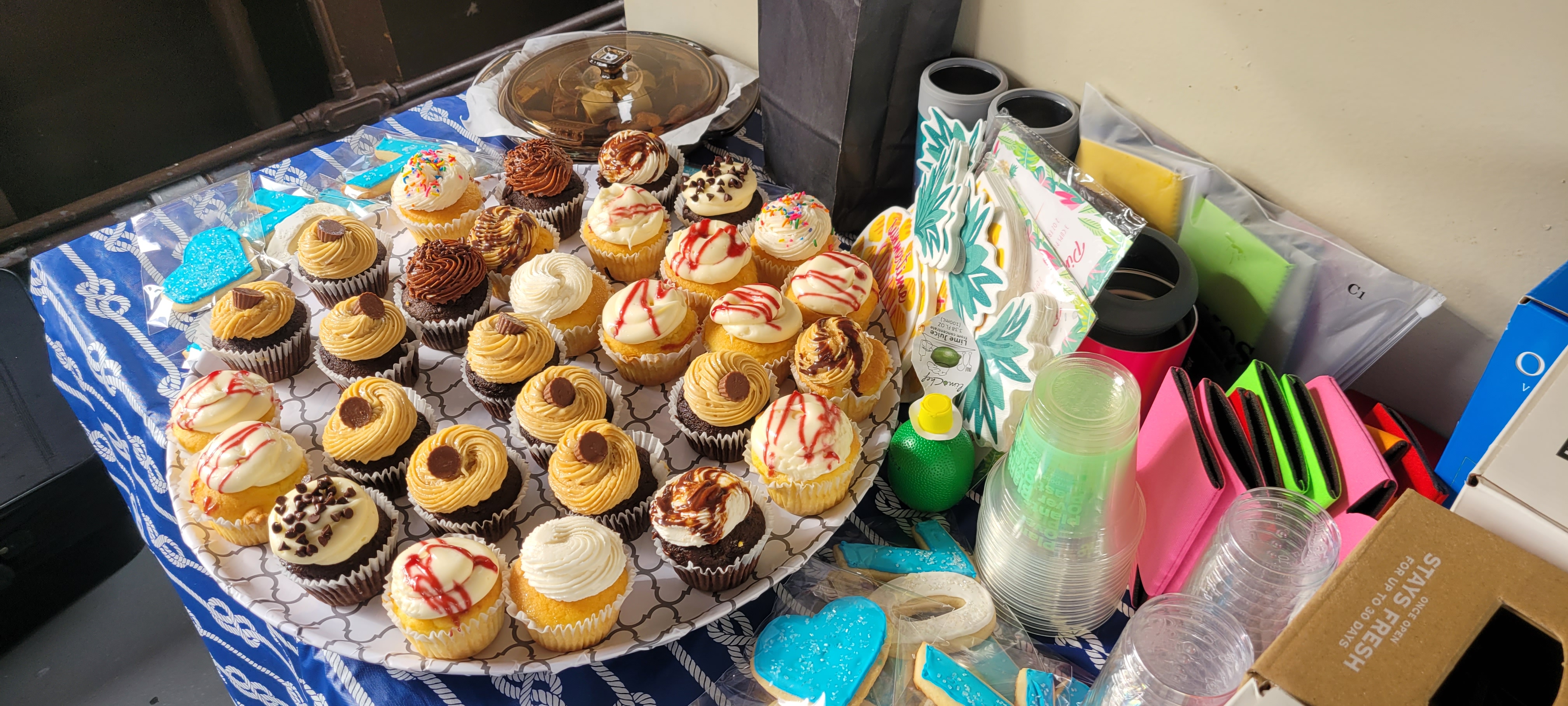 Kathy, Peggy’s sister made 70 cookies and all kinds of cupcakes.
