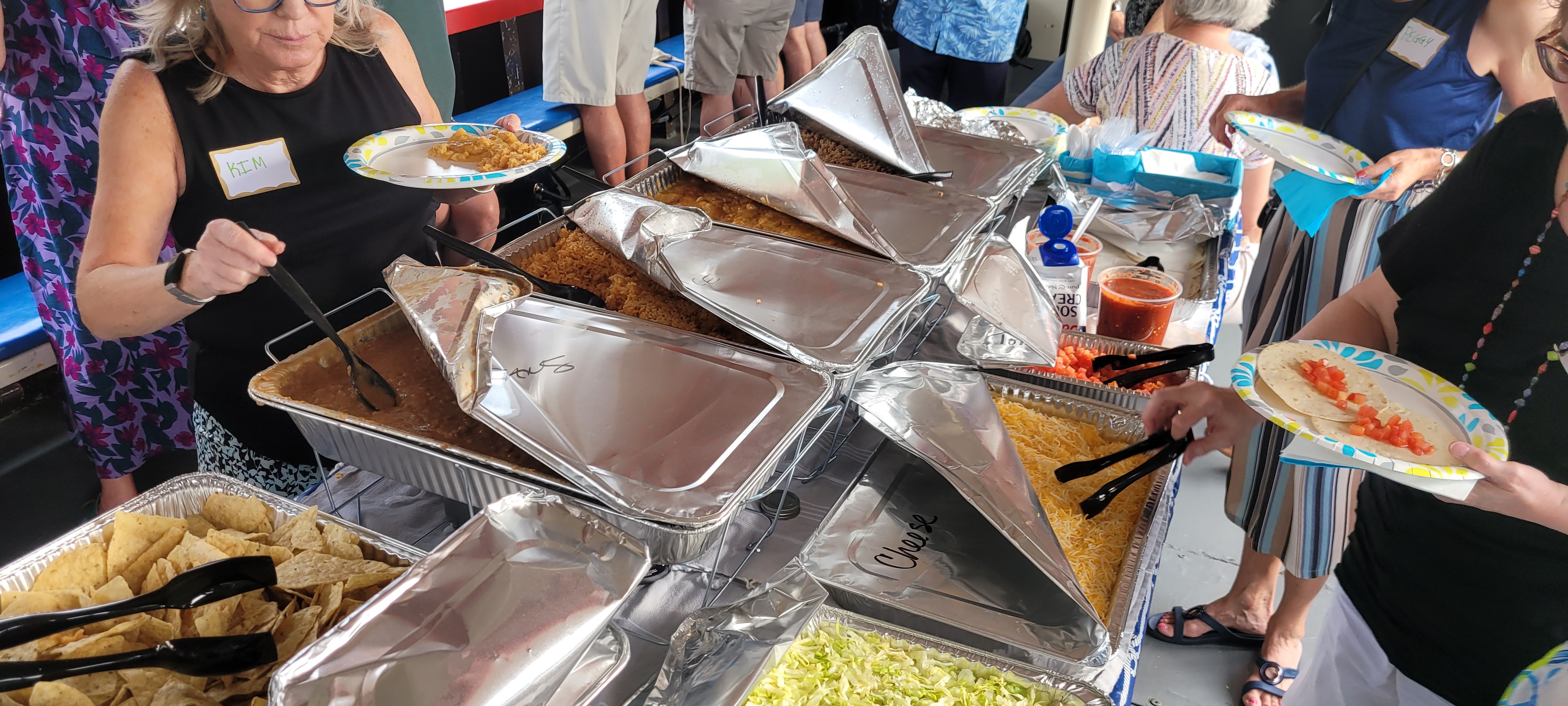 Great Mexican spread! Chicken enchiladas, beef tacos and burritos, rice and beans, and of course, chips and salsa. It all was delicious.