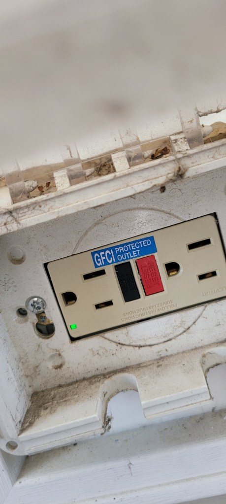 So I did indoor stuff. I did go to the hardware store and get a new GFI outlet for the porch. The old one got fried when I plugged the repaired cord in it. It sparked and quit working. Sometimes they do that when they are older.  It’s a 2011 Park Model and I think it just wore out.