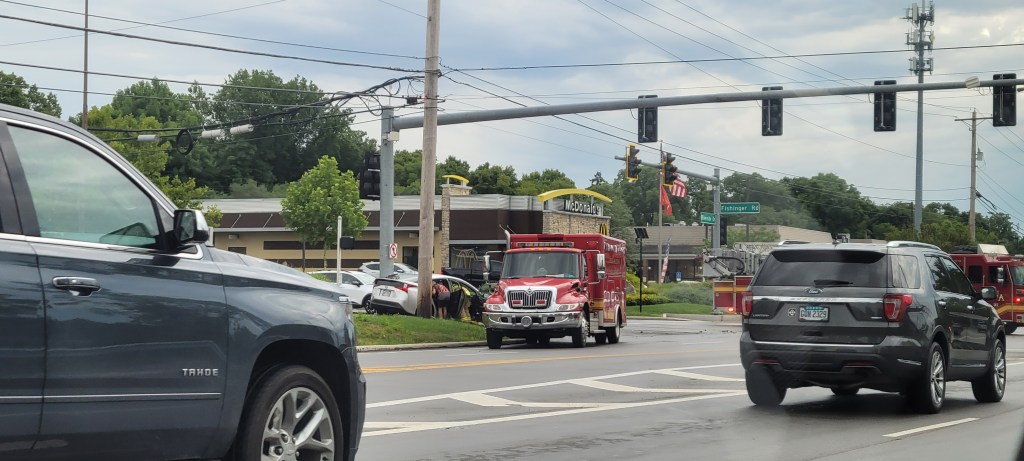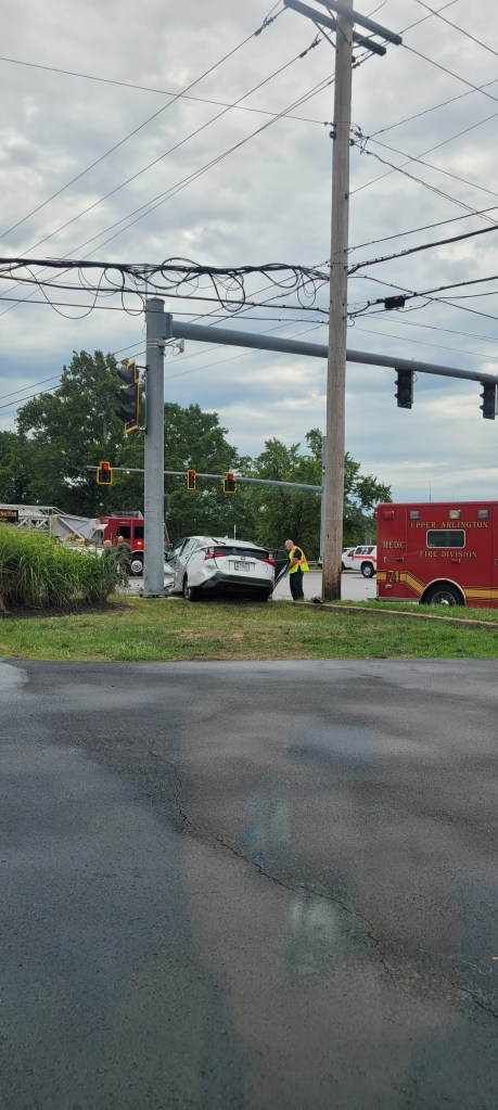 There was a huge wreck right where I needed to turn at a very large intersection on the way to his house. This car had driven right between 2 very large poles with all 4 doors smashed. I hope all occupants are ok.