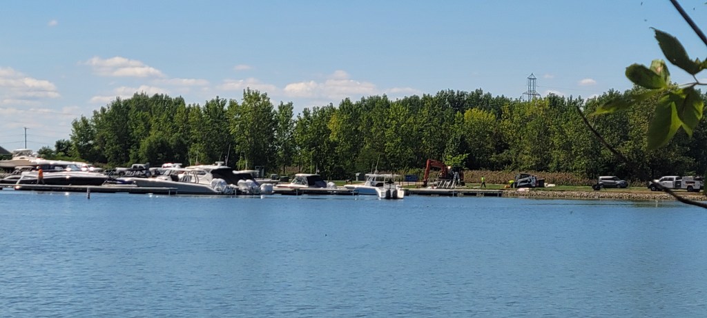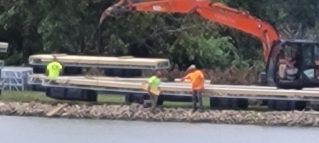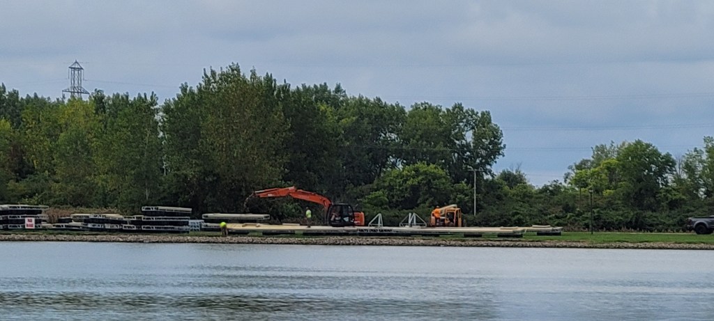 They are putting in docks for the weekend-long boat show right behind my trailer.