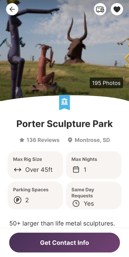 Headed to Porter Sculpture Park in Mitchell SD. Have a campground for the night.