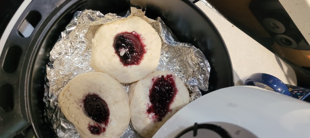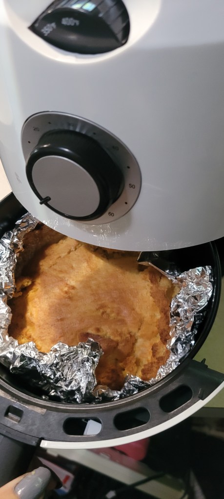 I’m so excited to have electric that I decided to make my corn bread in the air fryer. Pretty good for 8 minutes. Next blueberry biscuits.