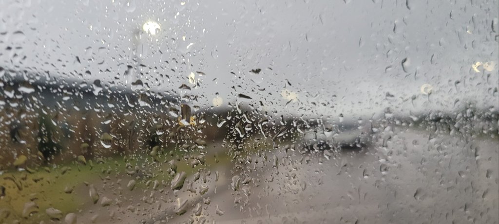 Rest stop at Westwood Rest Area. Pouring rain all night and into next day. Waited for it to stop before venturing on.