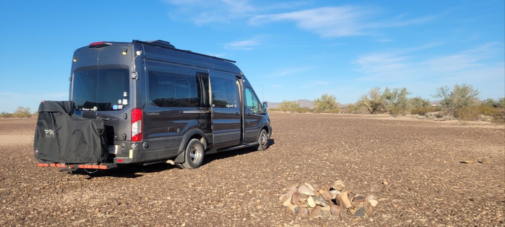 Got settled in on Plomosa Rd. It is boondocking with no services. You bring your own water in, trash is packet in pack it out, and Use solar for power or the generator. Have lots of lights out and keep the mice away from under your rig.