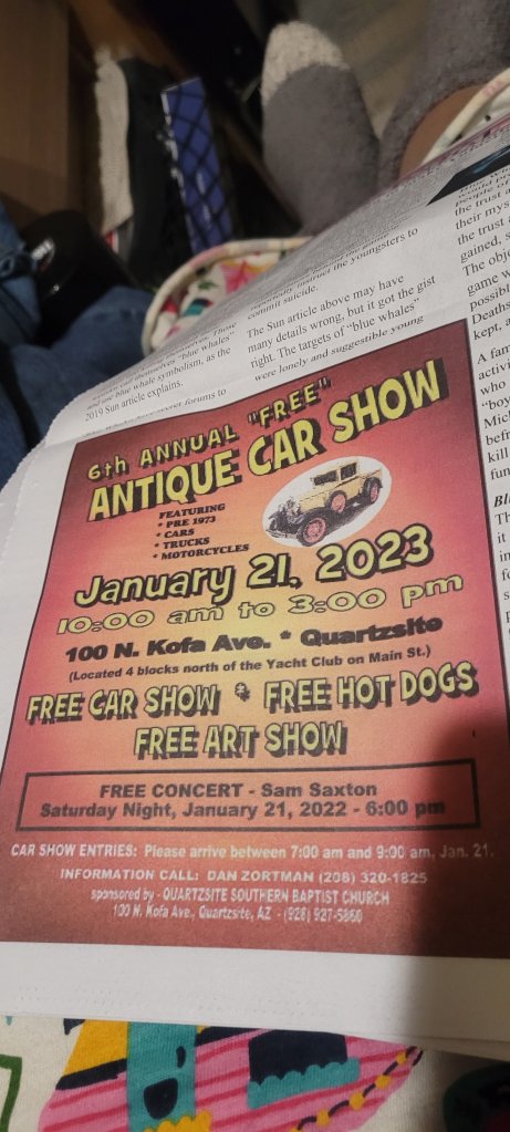 We bought raffle tickets to see if we win a bunch of money that they will hold during the Christmas party for the Quartzsite Roadrunner Gem and Rock Club dinner Thursday.