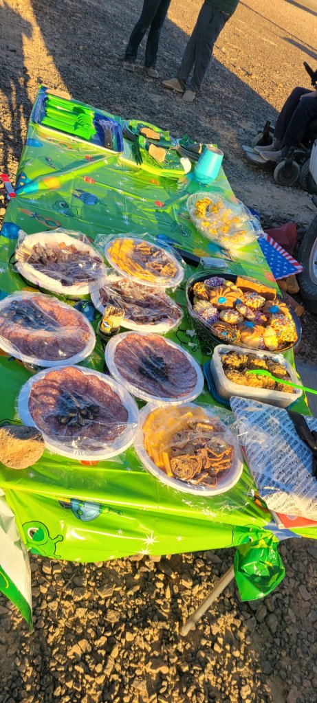We had an alien theme. CAROLYN really was the hostest with the mostest. She had the tablecloth, napkins, cups, alien men cake and food!