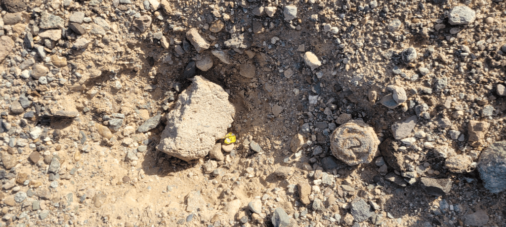 The one with duct tape had a ton of cool stuff in it. Had a pen to sign the log book that they all have. Then you log it in within the app and it tallies your finds. I’m up to 75 finds!