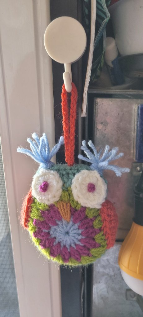 She can cross stitch and knit and crochet. She does it all! She made me this darling owl! They have become good nomad friends.