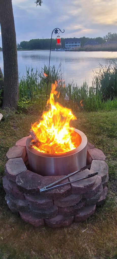 I saw an ad at the campground and a lady was giving away free bricks so I drove the Prius down to their campsite and snagged them up and made a smokeless fire pit in 10 minutes.