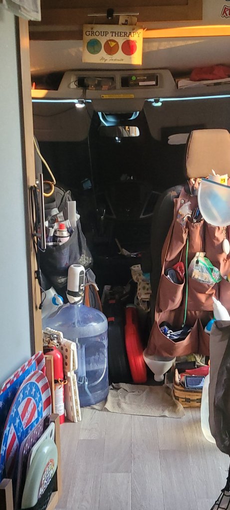 I had to come back to the camper and empty the water jugs. It really wants to get back on the road.