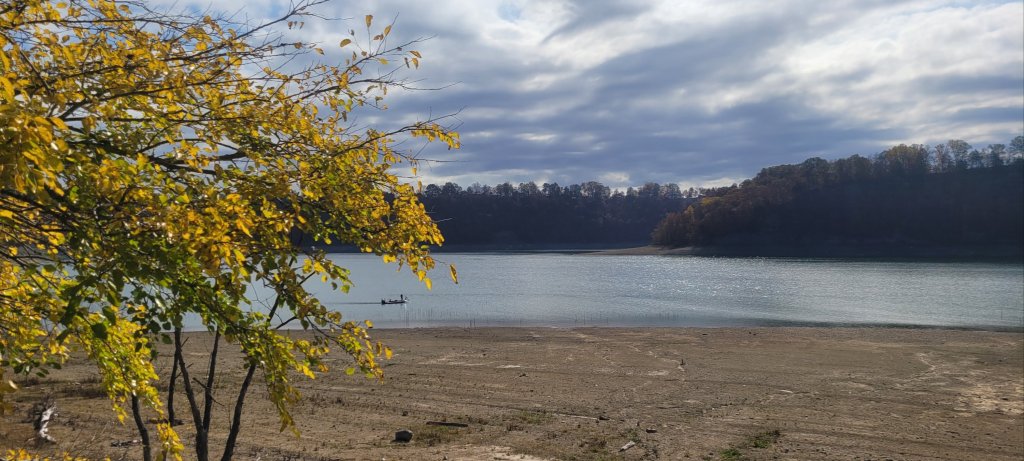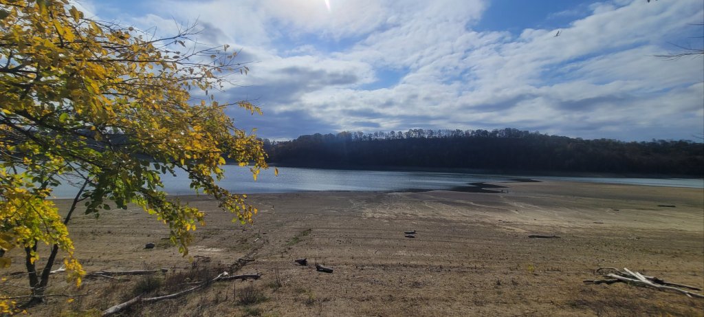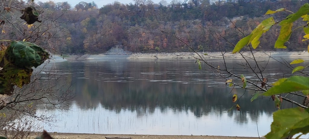 They let a little bit of the water out of the dam and it swishes the shoreline in an eerie series if waves. Then quits.