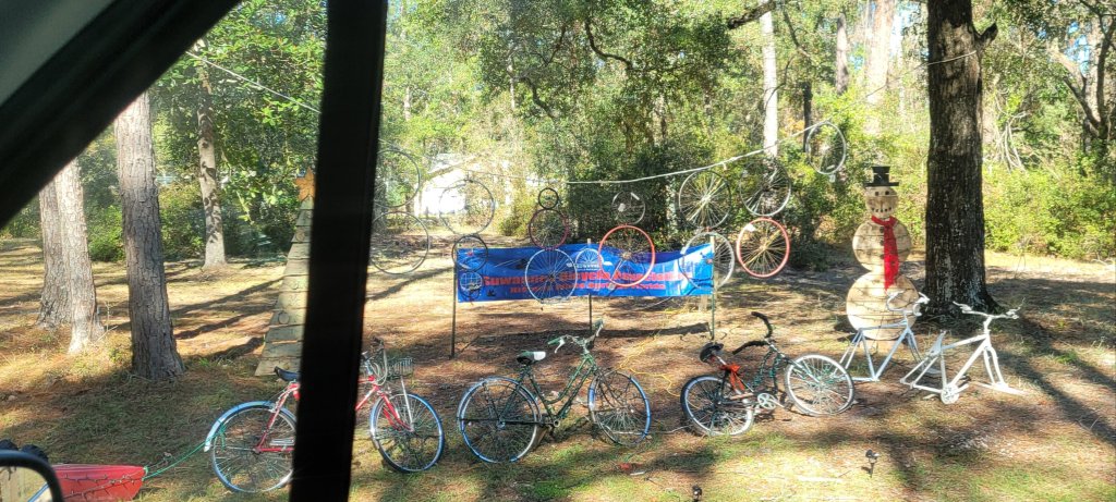 They have decorated and it’s really darling. There is a bike and canoe club that did a display of bicycles and canoes with Christmas lights.
