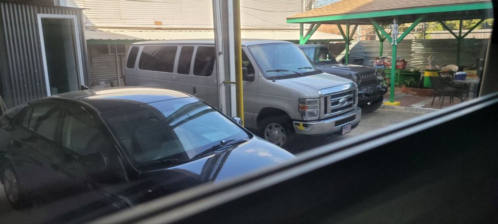 Heading into the hotel now in New Orleans. Got the van parked in this tiny little parking lot with razor wire.