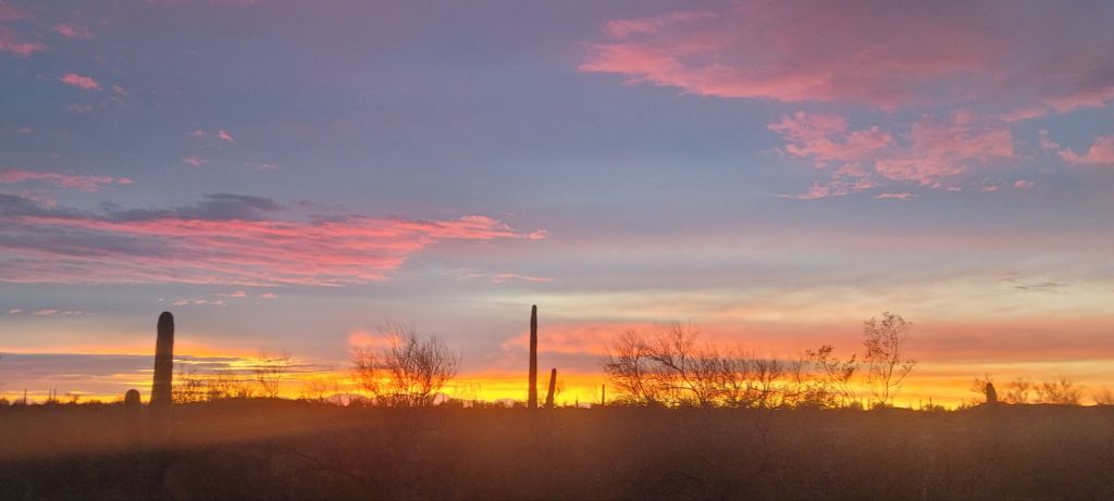 Meanwhile enjoy this beautiful sunset and this green desert.