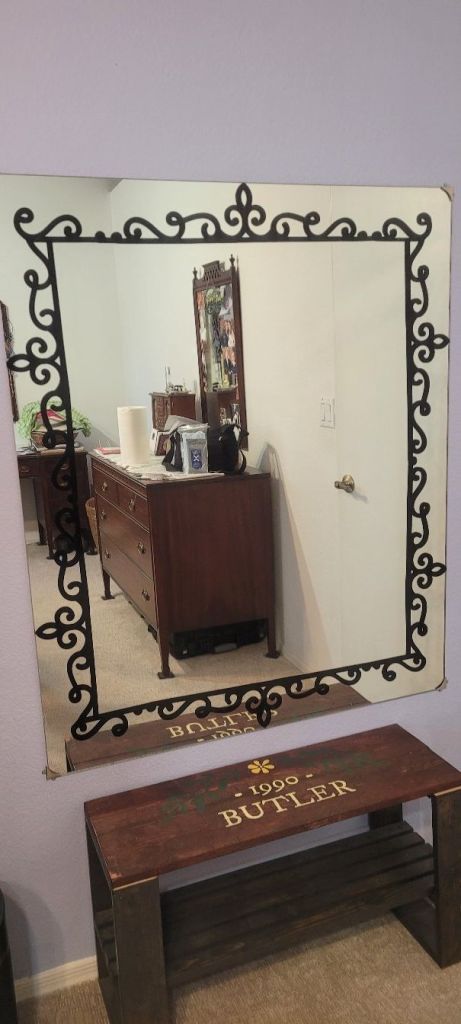 I cut out a wall stencil for her mirror on my Cricut machine.