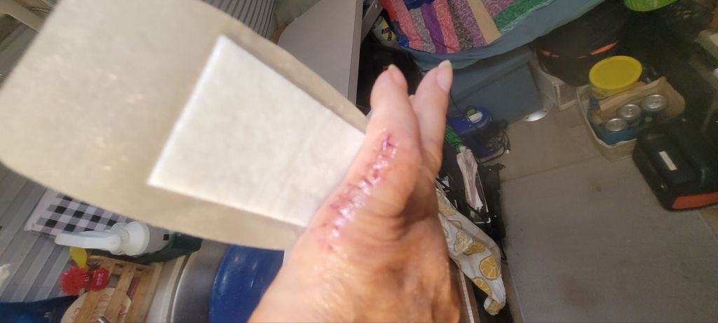 Get stitches in pinky out in the morning! Yeah!