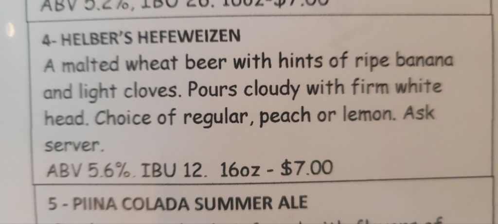 Great craft beer. I got a Helber’s Hefeweizen. Has bananas in it.