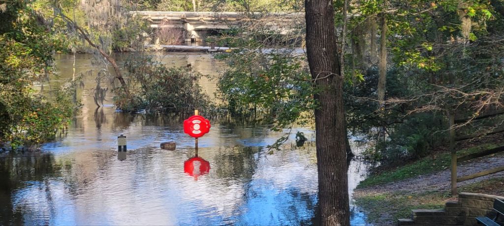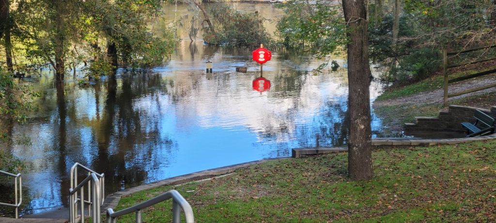 We are under a flash flood warning since the campground is by the Edisto River. I called the ranger and he said we’re up on a bluff and so we’d be okay. Flood stage 10 feet. NOAH weather says supposed to crest at 14.4 feet. Yikes.