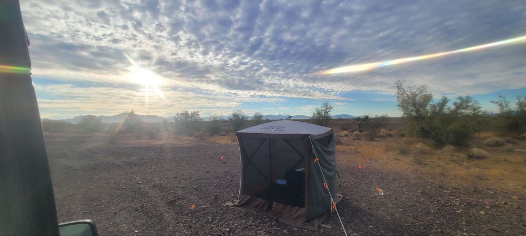 Day 91 – Jan 28 Tues. 0 February 6, 2025February 8, 2025 Written by Glamper Jan Put up the gazebo and had a campfire. Happy trails. Share this: Like and Follow Thx! Click to share on Facebook (Opens in new window) Facebook Click to share on Pocket (Opens in new window) Pocket Click to share on WhatsApp (Opens in new window) WhatsApp More Click to share on Pinterest (Opens in new window) Pinterest Like Loading...