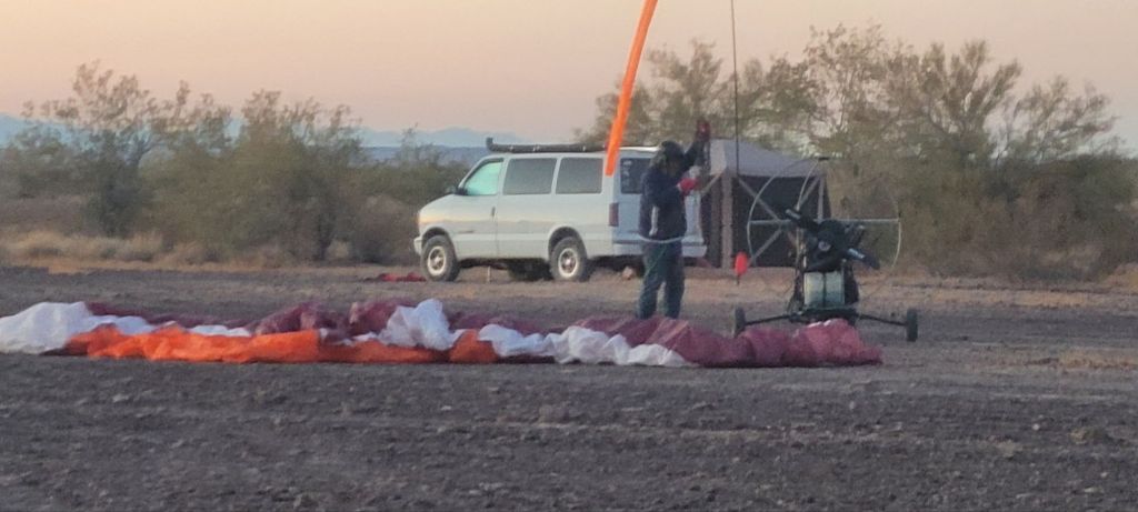 Mark my Paragliding buddy from Utah was out flying around this morning and as he was landing, the wheel of the flying machine hit a big rock and the wheel flew off!